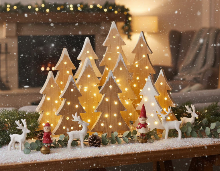 Créez une forêt de sapins lumineux en bois grâce à ce tutoriel déco de Noël simple et accessible. Une décoration chaleureuse à faire soi-même.
