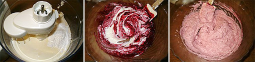 3. Battre la moitié de la crème en chantilly avec la moitié du sucre glace et y mélanger délicatement le mélange fruits rouges-gélatine jusqu’à obtenir une mousse onctueuse…