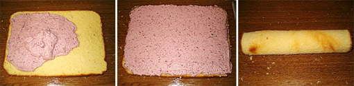 6. Quand le roulé est bien ferme, l’enduire d’alcool de fraise ou de fruits rouges délayés dans un peu d’eau (facultatif).