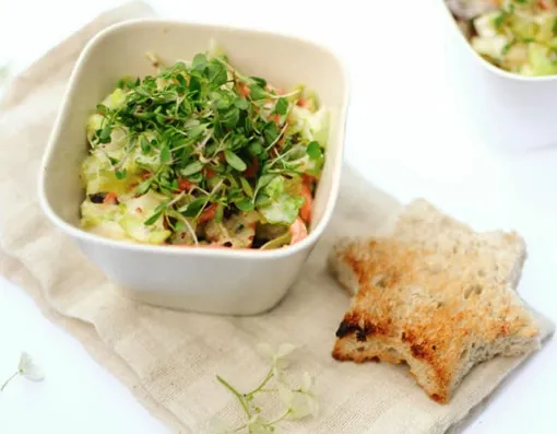 5. Mélangez le tout et laissez reposer au moins une heure au frigo. Cette salade est délicieuse bien froide !