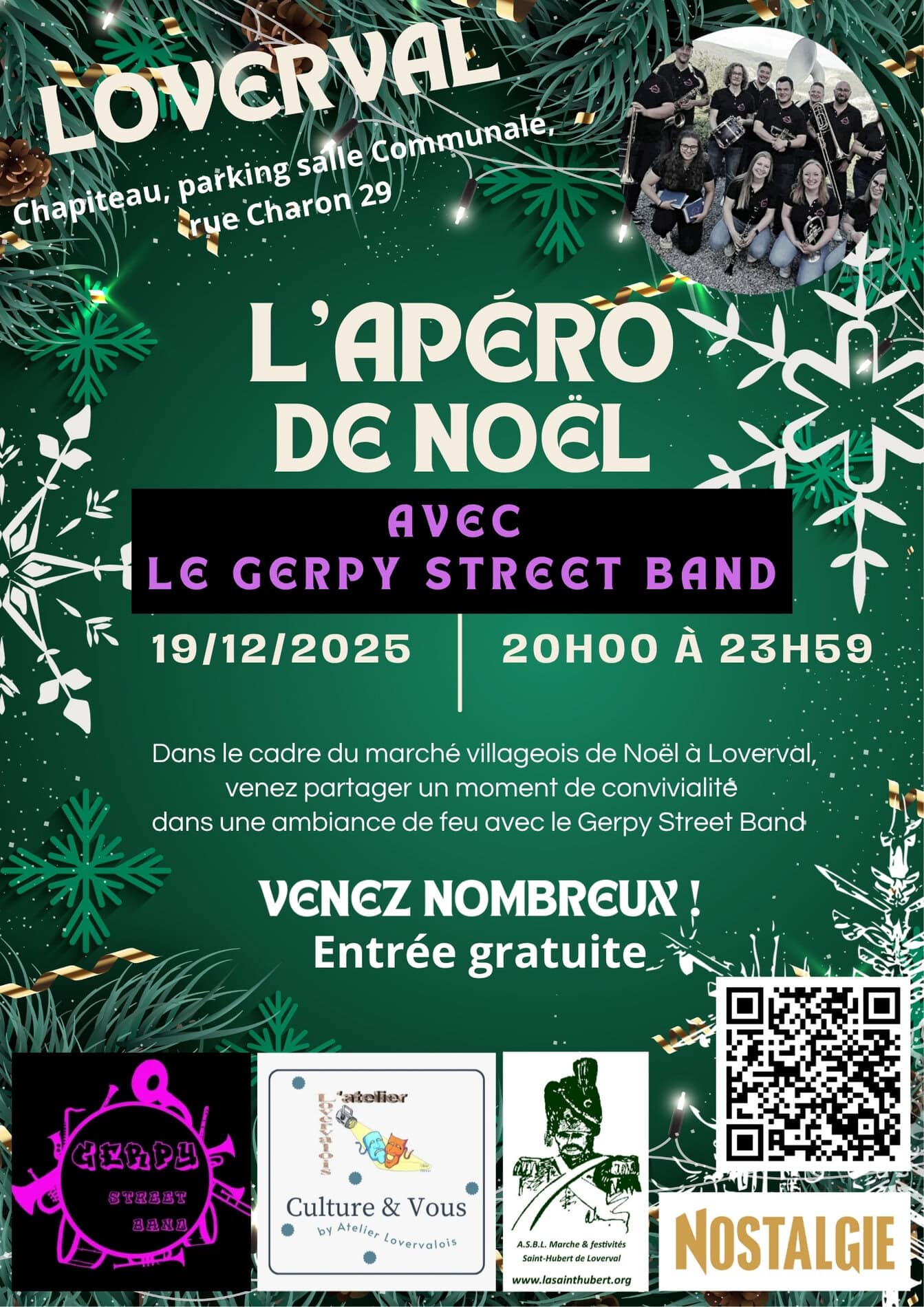 Nouveauté cette année: l’apéro de Noël le vendredi 19/12 de 20h à 24h avec le Gerpy Street Band; ambiance de feu!