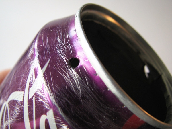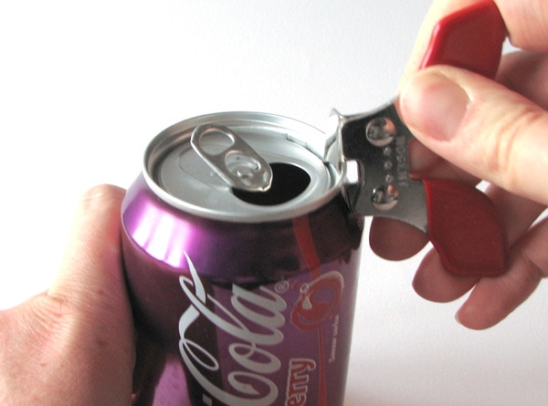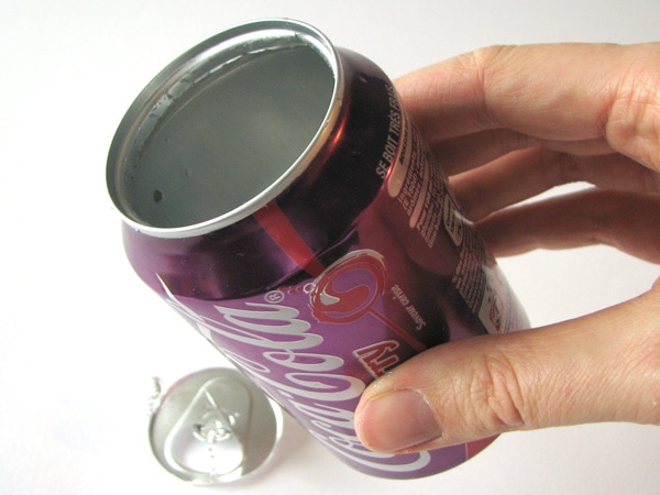 Retirez le couvercle de la canette avec un ouvre-boîte puis aplatissez les bouts qui pourraient être coupants avec la pince multiprise.